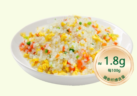 每100g膳食纖維含量在1.8g仿真米粒形態,飽腹感強,碳水替代優選,煮粥、炒飯無負擔,控卡人士福音
