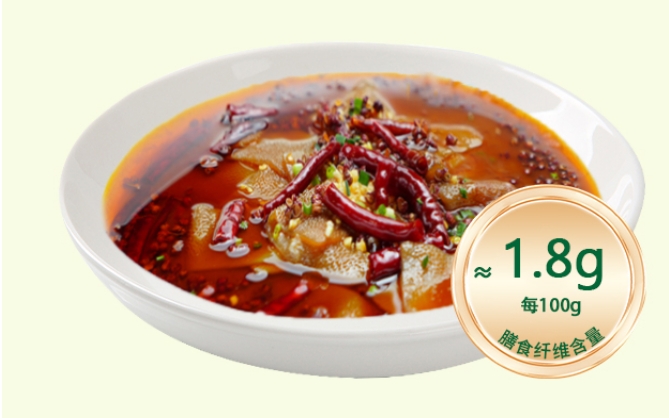每100g膳食纖維含量在1.8g灰褐仿真色澤,脆嫩彈牙,火鍋涮煮 10 秒即食,低脂版 “毛肚” 暢吃無壓力